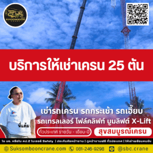บริการให้เช่าเครน 25 ตัน คือการเลือกความคล่องตัวและความคุ้มค่าสูงสุดสำหรับโครงการของคุณ เลือก พี่แต้ม สุขสมบูรณ์เครน 2019 เพื่อให้คุณได้มากกว่ารถเช่า แต่คือความมั่นใจเต็มร้อยจากทีมงานมืออาชีพที่มีประสบการณ์, ความปลอดภัยสูงสุดด้วยรถที่มีเอกสาร ปจ.2 ครบ, และการดูแลโดยตรงจากพี่แต้ม (เจ้าของ) ที่พร้อมให้คำปรึกษาและแก้ปัญหาหน้างานอย่างรวดเร็วตลอด 24 ชั่วโมง