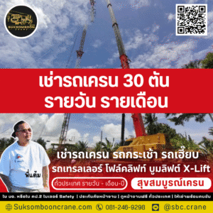 เช่ารถเครน 30 ตัน รายวัน รายเดือน คือการเลือกความคุ้มค่าและประสิทธิภาพสำหรับโครงการของคุณ เลือก พี่แต้ม สุขสมบูรณ์เครน 2019 เพื่อให้คุณได้มากกว่ารถเช่า แต่คือความมั่นใจเต็มร้อยจากทีมงานมืออาชีพที่มีประสบการณ์, ความปลอดภัยสูงสุดด้วยรถที่มีเอกสาร ปจ.2 ครบ, และการดูแลโดยตรงจากพี่แต้ม (เจ้าของ) ที่พร้อมให้คำปรึกษาและแก้ปัญหาหน้างานอย่างรวดเร็วตลอด 24 ชั่วโมง