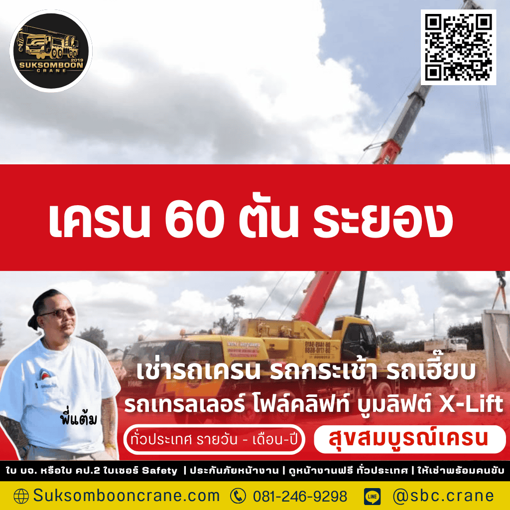 เช่าเครน 60 ตัน ระยอง คือการตัดสินใจครั้งสำคัญที่ส่งผลต่อความสำเร็จของโปรเจกต์โดยตรง เลือก พี่แต้ม สุขสมบูรณ์เครน 2019 เพื่อให้คุณได้มากกว่ารถเช่า แต่คือความมั่นใจเต็มร้อยจากทีมงานมืออาชีพที่มีประสบการณ์, ความปลอดภัยสูงสุดด้วยรถที่มีเอกสาร ปจ.2 ครบ, และการดูแลโดยตรงจากพี่แต้ม (เจ้าของ) ที่พร้อมให้คำปรึกษาและแก้ปัญหาหน้างานอย่างรวดเร็วตลอด 24 ชั่วโมง