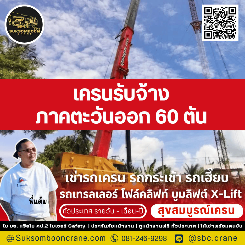 #เครนรับจ้างภาคตะวันออก #รถเครน60ตันภาคตะวันออก #เช่าเครน60ตันชลบุรี #เช่าเครน60ตันระยอง #เครนEEC #สุขสมบูรณ์เครน #พี่แต้มสุขสมบูรณ์เครน2019 #รถเครนปลอดภัย #รถเครนมีใบปจ2 #เช่ารถยกของหนัก #บริการรถยกชลบุรี #รถเครนก่อสร้าง #รถเครนมืออาชีพ