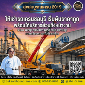 สนใจเช่ารถเครนที่ได้มาตรฐานความปลอดภัยสูงสุด ติดต่อพี่แต้ม สุขสมบูรณ์ โทรศัพท์: 081-246-9298 Line Official: @sbc.crane เว็บไซต์: www.suksombooncrane.com