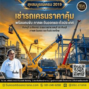 สนใจเช่ารถเครนที่ได้มาตรฐานความปลอดภัยสูงสุด ติดต่อพี่แต้ม สุขสมบูรณ์ โทรศัพท์: 081-246-9298 Line Official: @sbc.crane เว็บไซต์: www.suksombooncrane.com